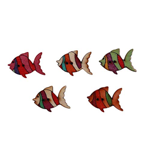 N-K 50 pezzi a forma di riccio a forma di pesce, 2 fori, tasti in legno verniciato, per cucito, artigianato, decorazione di abbigliamento, pesce, durevole e utile e pratico