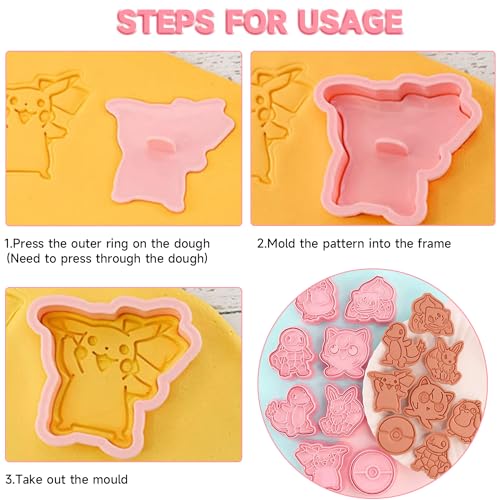 【Facile da Usare】Basta posizionare stampi biscotti esterno sull'impasto e premerlo delicatamente,quindi premere segno cartoni animati sull'impasto per ottenere un impasto a forma di cartoni animati e infine cuocere in un biscotto.Il timbro tagliabiscotti può essere utilizzato anche come timbro fai-da-te autonomo.