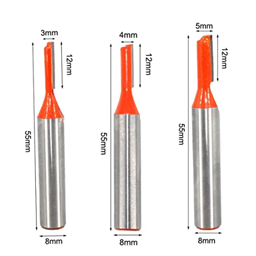3 Pezzi Fresa Diritta A Flauto Singolo, Con Frese Per Legno 8mm, Fresa Per La Lavorazione Del Legno 3 Mm / 4 Mm / 5 Mm, Router Bit Set A Doppia Scanalatura Con Codolo