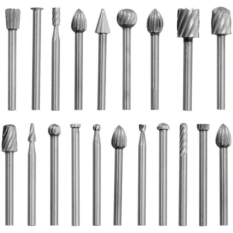 Il set di frese in metallo duro include 20 punte diverse per smerigliatrici per varie esigenze di perforazione, funzionanti con la maggior parte dei piccoli utensili rotanti per intaglio fai-da-te. Specifiche: < br /> Materiale: acciaio Diametro del gambo: 3 mm / 0,12 pollici Lunghezza totale: 40 mm / 1,6 pollici Peso della confezione: 55 g / 1,94 once Dimensioni confezione: 100 * 80 * 10 mm / 3,94 * 3,15 * 0,39 pollici Nota:< /b> Le teste di taglio non sono strumenti molto appuntiti, lavorano bene nel legno più tenero. Lista di imballaggio:< /b> 20 * Punte per smerigliatrici