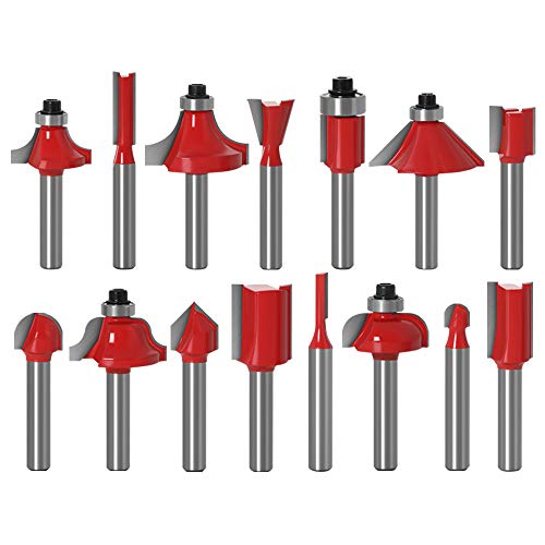 15 Pezzi Set Frese per Scanalature del Legno Attacco da 6,35 mm 1/4 '' Set di Punte per Router con Punta in Carburo di Tungsteno per Scanalare, Rifilare, Smussare, Modellare il Legno