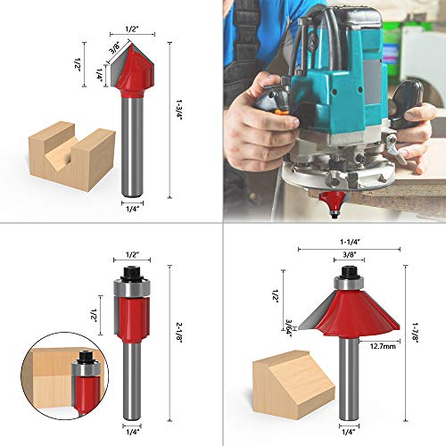 ,: Tutte le punte degli utensili hanno un portautensili rettificato di precisione con un diametro di 6,35 mm, adatto a tutte le frese da 6,35 mm, kit di taglio in acciaio forgiato con lame in metallo duro di alta qualità, adatto per l'uso professionale nella lavorazione del legno.