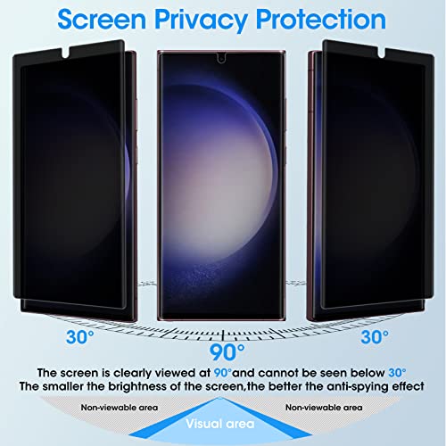 2 Pezzi Galaxy S23 Ultra Vetro Temperato Privacy Pellicola per Samsung, Compatibile con ID Impronte Digitali, HD Chiaro, Curvo 3D Durezza 9H Vetro Protettore per Samsung S23 Ultra 5G