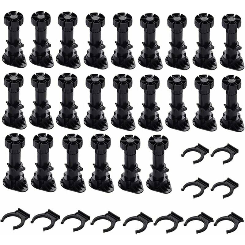 La confezione include: la confezione contiene 36 pezzi, inclusi 24 piedini neri regolabili per armadio e 12 clip nere per il montaggio del piedistallo. Il numero di piedini per armadio è sufficiente per le tue esigenze. Materiale di alta qualità: questa gamba regolabile per armadio è realizzata in plastica di alta qualità, che è molto durevole, resistente, resistente all'usura, facile da lavorare, resistente all'umidità, alla corrosione e bella. Design regolabile: questo il piede ha un design regolabile con un intervallo di regolazione di 120-150 mm. Puoi regolarlo a un'altezza adeguata per adattarlo ai tuoi mobili. Le nostre gambe per mobili possono ridurre l'attrito tra i mobili e il pavimento. Base stabile: questa gamba regolabile per armadio adotta una base spessa, che è molto dura, ha una forte resistenza agli urti, resistenza ai graffi e stabilità, i quattro- la base del foro viene allargata per aumentare la gamma di forza. Ampia gamma di usi: questa gamba regolabile