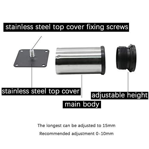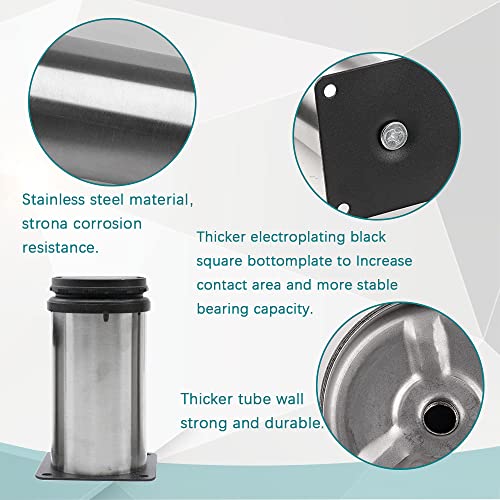 4 Pezzi Gambe Regolabili per Mobili, 50 x150 mm Acciaio Inossidabile Piedini per Mobili, Piedi Base per Armadietto, Divano, Tavolo, Letto