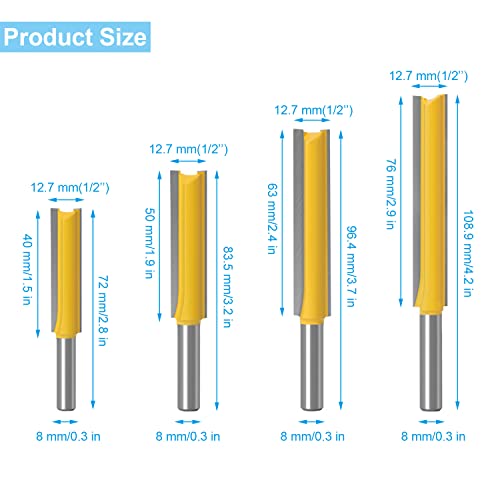 4 Pezzi 8mm Gambo Fresa per Scanalature Legno, Fresa a Taglienti Diritti, Punta da Fresatrice Dritta con Doppia Scanalatura Fresa Lavorazione Legno (40mm 50mm 63mm 76mm)