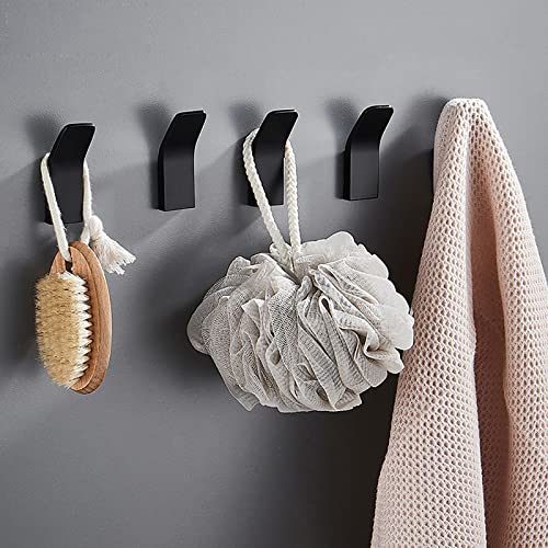 4 Pezzi Ganci Adesivi con adesivo, Nero Porta Asciugamani Senza Foratura, Portasciugamani in Acciaio Inox, Ganci Autoadesivi, per Cucina, Bagno, Ufficio--Gancio Singolo