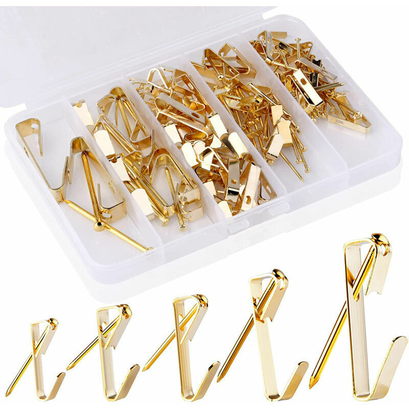 Descrizione [kit per appendere] riceverai una scatola di 120 piastre e chiodi a gancio in un vassoio di plastica, 25 ganci da 10 LB, 15 ganci da 20 LB, 10 ganci da 30 LB, 8 ami da 50 LB, 2 ami da 100 LB. I 60 ganci sono disponibili in 5 misure e sono 5 cm, 3,8 cm, 2,5 cm e 60 chiodi corrispondenti in 3 misure. [gancio per foto in acciaio inossidabile] Questo pendente da parete dorato è realizzato in acciaio inossidabile di alta qualità con superficie liscia, ottonata, resistente alla ruggine, robusta e durevole, non facile da piegare e durevole. 【Gancio multifunzionale】 5 ganci per foto di diverse dimensioni, ampia gamma di peso, design dall'aspetto dorato più raffinato ed elegante, molto adatto per l'arte e la decorazione domestica. 【Facile da installare】 Basta inchiodare l'unghia sul muro con un martello o inchiodarlo al muro. Puoi anche usare questo chiodo per perforare prima con una punta da trapano. Può essere utilizzato per muro di cemento, muro di mattoni, muro di legno. Ma