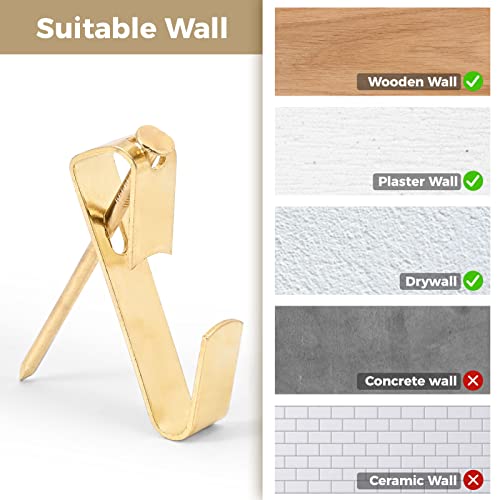 【Installazione Semplice】Devi solo usare un martello per fissare questi ganci per quadri al muro.La parte superiore a bulbo dei ganci protegge le dita dal ferirsi.Non usare l'unghia sul muro di vetro, piastrelle o cemento.