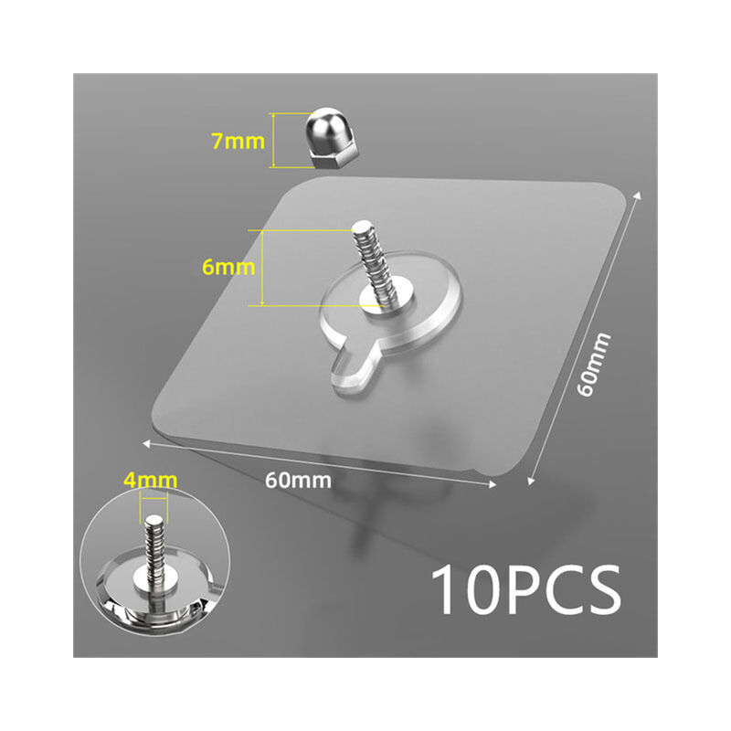10 pezzi ganci per cornici per foto portaoggetti portaviti porta appendiabitiAccessori da cucina per Organizer di gadget multifunzione autoadesivi Nome: gancio per cornice per foto & sEssa in riserva cremagliera gancio Colore: trasparente Dimensioni: 60*60mm Materiale: ps + placcatura in ferro + viscosa Tipo: appeso autoadesivo Il pacchetto Include: 10 pezzi * ganci