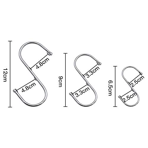 18 Pezzi S Ganci Gancio a Forma di S in Acciaio Inossidabile Grande Medio Piccolo Utilizzato per Padella da Cucina Asciugamano da Bagno Camera da Letto Ufficio Cestino da Giardino