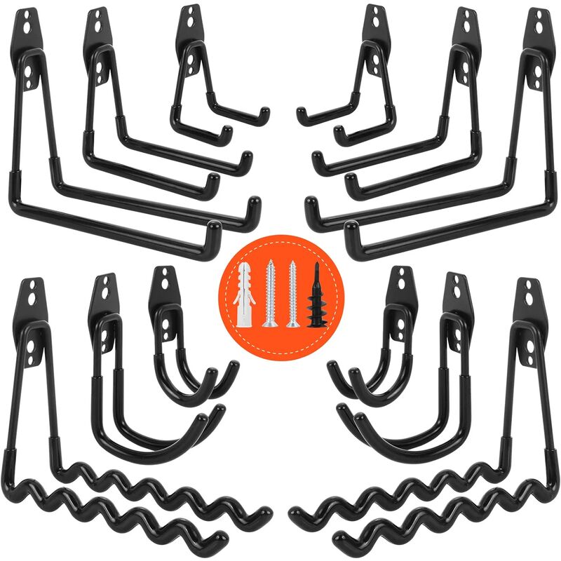 un singolo gancio, il design unico del singolo gancio. il doppio braccio può rendere la forza più equilibrata e stabile, puoi sopportare facilmente il peso. Ideale per appendere pale, scale, biciclette, scope, sedie piegate, tubi, attrezzi elettrici e da giardino! 【DESIGN ONDULATO UNICO E RIVESTIMENTO ANTISCIVOLO】I doppi ganci aumentano il gancio ondulato, questa struttura aumenta l'attrito tra l'oggetto e il gancio, rendendo la forza più equilibrata e stabile, ideale per strumenti difficili da maneggiare. maniglia (come tubi, funi, fili, ecc.). Il rivestimento in gomma antiscivolo è progettato per tenere saldamente gli oggetti, proteggerne le superfici dai graffi e impedire ai ganci del garage di scivolare e arrugginirsi. 【SODDISFARE DIVERSE ESIGENZE DI STOCCAGGIO】Ci sono 12 ganci da garage in 6 diverse misure: 2