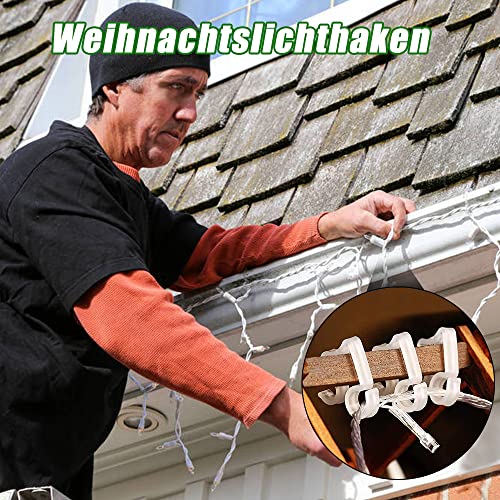 【Facile da Installare】L'uso della grondaia della staffa delle luci delle corde è molto semplice, devi solo usarle per fissare le luci decorative in posizione.Non sono adatte solo per uso interno, ma anche per uso esterno e negli inverni freddi anche le clip per grondaia non cadere.