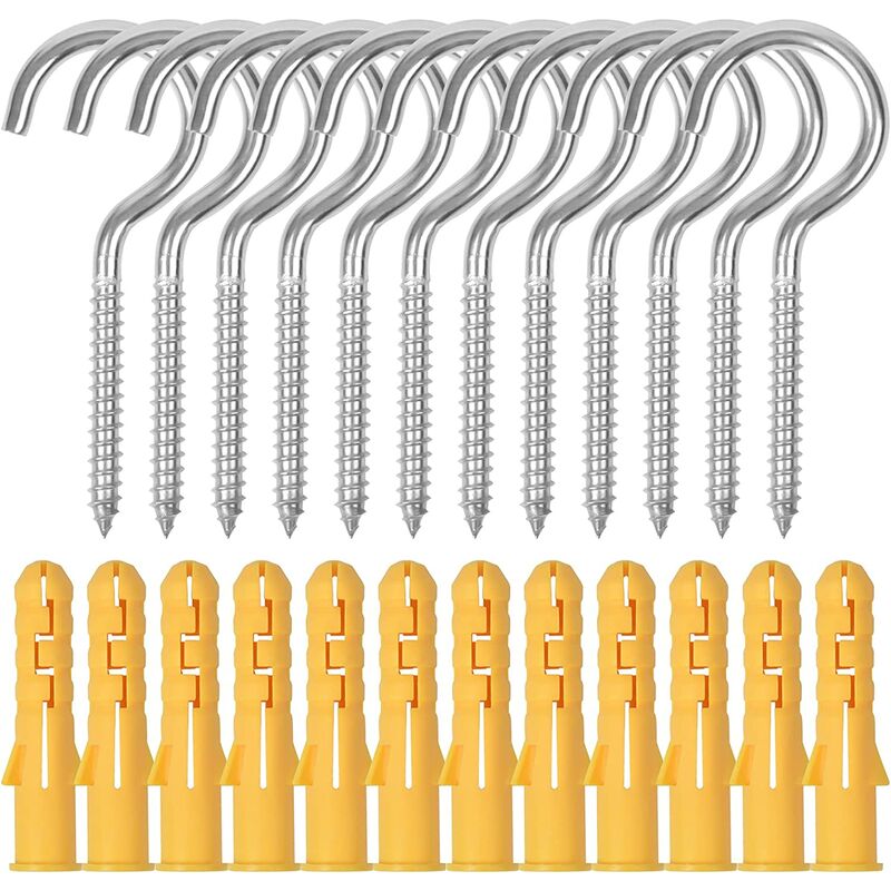 Materiale superiore - : I nostri ganci per viti a occhiello sono realizzati in acciaio inossidabile 304, impermeabile, antipolvere, resistente alla corrosione, robusto e durevole, ottimo per progetti all'aperto.E i nostri tubi di espansione sono realizzati in ABS di alta qualità. 【Value Pack 】: Viene fornito con 12 ganci a vite a forma di occhio e 12 tubi di espansione, sufficienti per l'uso quotidiano. La dimensione: M6 X 80, lunghezza totale: 80 mm, diametro tra gli anelli: 24 mm. 【Design unico】: Ogni gancio a vite ha un'apertura circolare nella parte superiore, in modo da poter infilare cavi, catene e corde per applicazioni sospese. Il passo della vite è profondo e può essere fissato saldamente su legno o altre superfici. 【Facile da installare】: le punte di metallo possono mordere rapidamente il legno, il compensato o il muro a secco senza strapparsi;