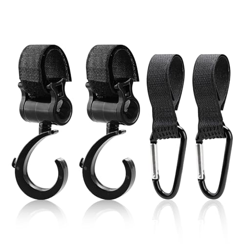 Cambio perfetto: il pacchetto include un totale di 4 ganci multifunzione, gancio per passeggino in velcro rotante a 360 gradi in 2 pezzi (dimensioni: 14 * 5 cm) e moschettone a forma di D in metallo in 2 pezzi (lunghezza di 6 cm).
