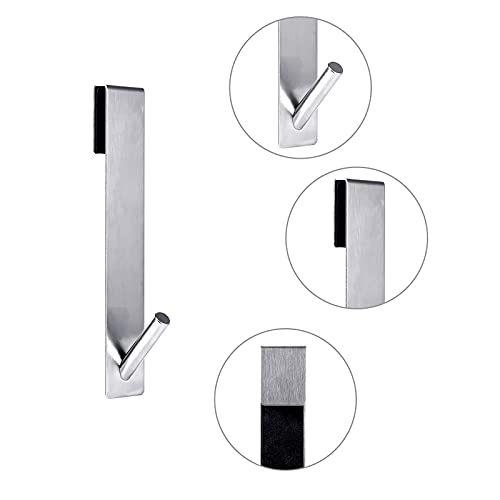 AIEX 2 Pezzi 18cm Ganci per Porta Doccia, Acciaio Inossidabile Senza Foratura Gancio Porta Asciugamani Sopra Porta Doccia Senza Telaio per Bagno-Argento