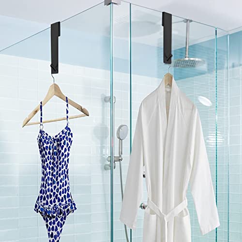 2 Pezzi Ganci Per Porta Doccia, Asciugamani Bagno Gancio In Acciaio Inox, Ganci Per Asciugamani, Ganci Sopra Porta Appendiabiti a Parete Senza Foratura Per Box Doccia In Vetro Senza Cornice (Nero)
