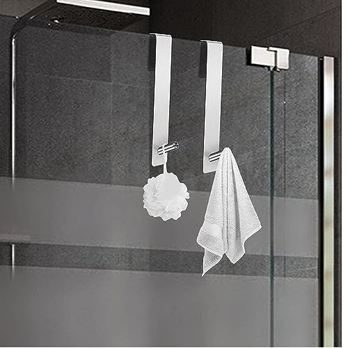 2 Pezzi Ganci per Porta della Doccia, Gancio per Asciugamani con Strati di Schiuma, Ganci per Porta per Box Doccia Paravento per Doccia in Vetro Paravento per Doccia in Vetro (17,8 cm/Argento)