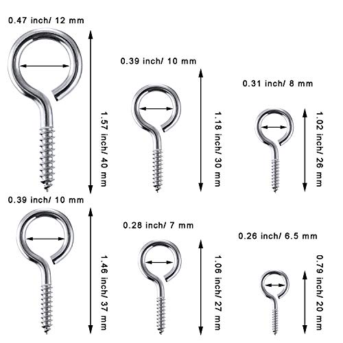 100 pezzi Ganci a Vite, Ganci a Vite con Una Scatola di Immagazzinaggio Viti a Soffitto Gancio per Soffitto, per Area Interna ed Esterna, Tazza da Tè (6 Taglie)