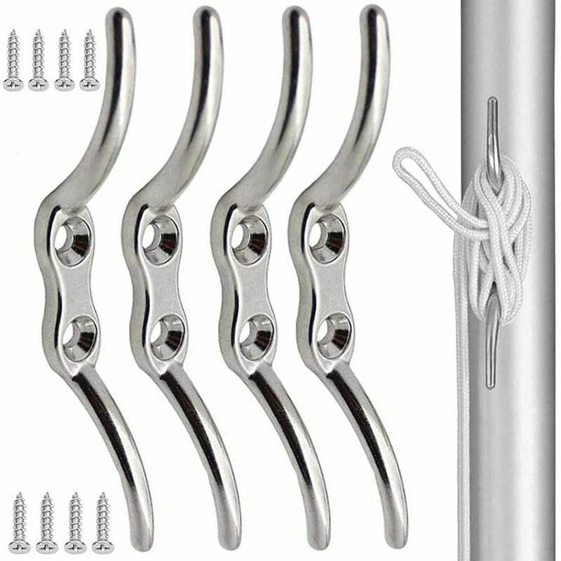 Il pacchetto include: i tacchetti per funi da barca includevano 4 pezzi in totale, argento. La dimensione è di 10 cm / 4 pollici. Aiuteranno a fissare saldamente tutti i cavi, ideali per fissare i cavi ciechi., Acciaio inossidabile di alta qualità, robusto, resistente alla ruggine, abbastanza resistente e non facile da rompere. E la superficie liscia eviterà danni alle tue mani. Alta sicurezza: il gancio dell'asta della bandiera può tenere stretta la corda, puoi legare piccole corde o corde di tende o ombrelli fuori dalla portata per prevenire incidenti e garantire la sicurezza dei bambini o di chiunque altro. Facile da usare: gli accessori per l'ormeggio della barca sono facili da installare senza saldatura, puoi usarli facilmente con le viti. Il gancio può riporre efficacemente la corda delle tende, risparmiando spazio. Ampio utilizzo: il gancio per tacchetti per corde è adatto per l'uso su stendibiancheria o corde di lino ed è adatto anche a tutti i tipi di tende come fissaggio a