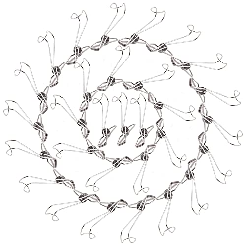 30 Pezzi Clip Gancio Lavanderia Portatile, mollette in Acciaio Inox, Metallo Appeso Clip Gancio, Mollette Metalliche con Ganci per Vestiti Telo da Bagno Asciugamano Cappello Fogli Cappotto