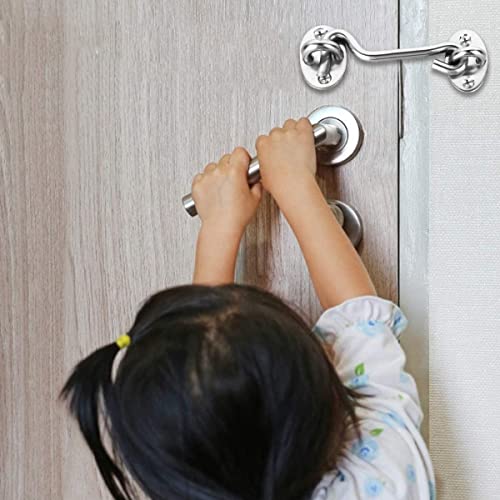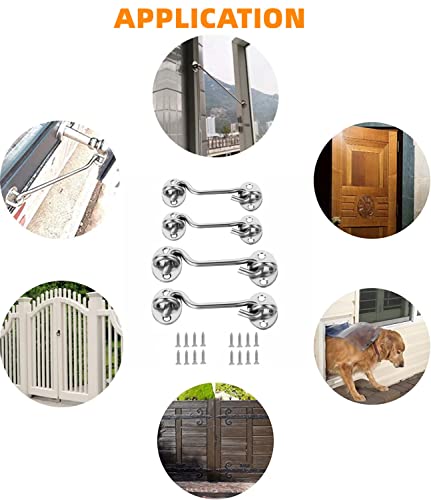 Funzione: La chiusura a occhiello con gancio della cabina è ideale per l'apertura di porte o sportelli. Ideale per fissare porte e finestre. Adatto per bloccare portelli, porte di capannoni o finestre apribili, altamente conveniente per ottenere 4 pezzi con 2 dimensioni.