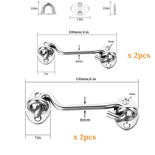 4 Pezzi Gancio e Occhio Gancio Della Cabina, Gancio di Tempesta in Acciaio Inox, Gancio della Porta di Bloccaggio della Finestra Gancio del Cancello della Porta per le Garage Finestre 4" 6" Argento