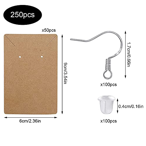 250 Pezzi Gancio per Orecchino, Espositore per Gioielli in Carta Kraft, Chiusura Orecchino Trasparente, Gancio per Orecchino Placcato Argento, per la Creazione di Gioielli fai da te