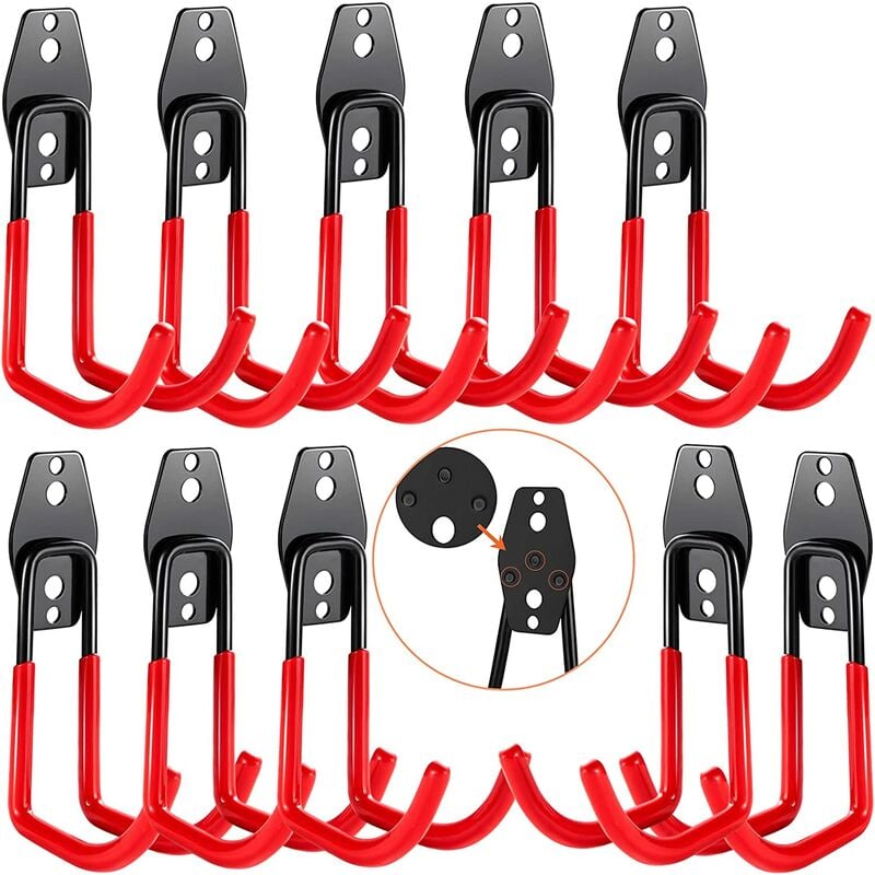 Perfetto per oggetti pesanti--Si tratta di 10 ganci a doppia parete. La lunghezza estesa e il rivestimento antiscivolo ti consentono di organizzare e appendere oggetti pesanti fino a 40 libbre. i nostri ganci hanno 3 punti di saldatura invece di 4, possono sostenere più peso --VARIE FUNZIONI--Il nostro pesante- I ganci da garage sono ideali per l'organizzazione, in particolare con sedie pieghevoli, scale, biciclette, attrezzi, tubi da giardino, kayak, legname, attrezzi sportivi e altri oggetti ingombranti. --Ampiamente usato: i ganci sono fantastici. per riporre oggetti di grandi dimensioni come biciclette, scale, attrezzi da giardino, tavole a vela, tavole a vela, kayak, legno, attrezzature sportive, ecc. --FACILE INSTALLAZIONE - Solo utilizzando un trapano e un cacciavite, i nostri ganci possono essere facilmente si montano su cartongesso, muro in legno, muro in muratura o muro in cemento con le viti e i 4 tipi di tasselli, si adattano perfettamente a qualsiasi tipo di pareti