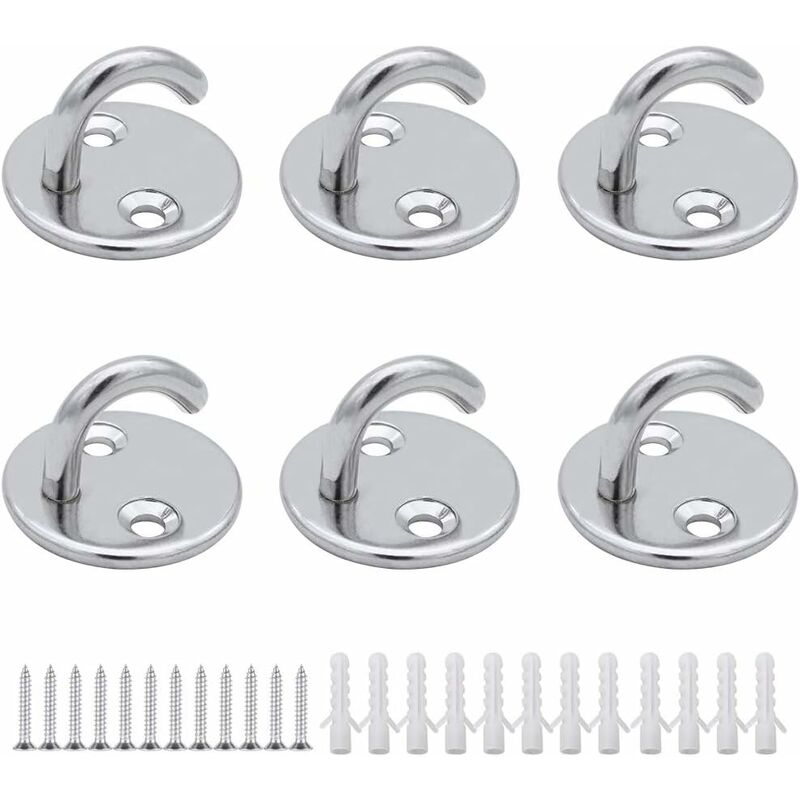 Facile da montare: questo gancio da soffitto è adatto per il montaggio a soffitto, ideale per uso interno o esterno. Applicazione: Adatto per l'uso in qualsiasi punto della casa, tra cui cucina, bagno, garage, corridoio, capannone e altro ancora, altalene per lo yoga, amache e altri oggetti pesanti. Gancio e vite