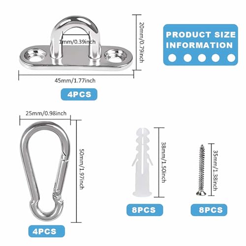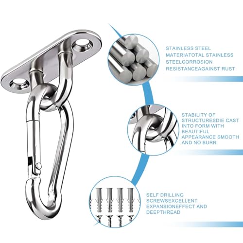 EIHI 4 Pezzi Gancio Soffitto per Piastra Oculare con Moschettoni Placca Occhiello 304 Acciaio Inossidabile 4 Fori Piastra di Copertura per Barche Cinturino per Allenamento Yoga Swing Amaca