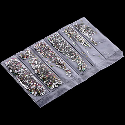 2000 Pezzi Gemme di Vetro con Strass Rotondo con 6 Dimensioni Miste (1.6 - 3 mm) per Unghie Arte, Decorazioni del Telefono e Mestieri Fai da Te (Aurora Boreale Colore)