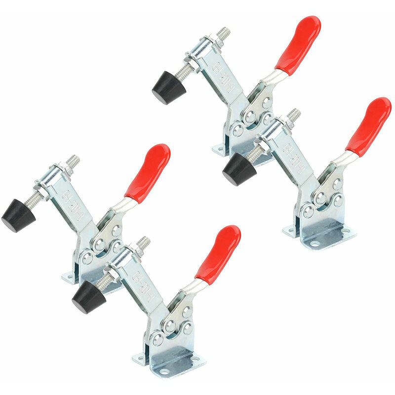 I morsetti a levetta da 4 pezzi per tenere rapidamente lamiere o circuiti stampati, controllo a leva, facilità d'uso. Caratteristiche: utilizzato per trattenere rapidamente lamiere o circuiti stampati, per il funzionamento di macchine, saldature, stampi, assemblaggio di apparecchiature elettroniche, ecc. Durante il serraggio la leva è controllata per evitare qualsiasi impatto sul funzionamento dovuto alla spinta laterale. Morsetto a levetta montato lateralmente, barra di bloccaggio a U. Manico in plastica per un utilizzo facile, sicuro e confortevole. Manici in vinile rosso resistente all'olio e alle macchie. Specifiche: Materiale: metallo + plastica + gomma Tipo: orizzontale Angolo di apertura della maniglia: 60° Angolo di apertura della barra: 85° Capacità di tenuta: 90 kg / 198 libbre Diametro del foro: 5 mm / 0,196 Lunghezza dell'articolo: 142 mm / 5,59 pollici Peso della confezione: 480 g / 16,93 once Dimensione del pacchetto: 150 * 120 * 30 mm / 5,91 * 4,72 * 1,18 pollici Lista