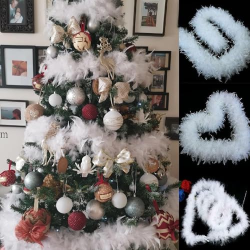 【Ghirlanda decorativa per albero di Natale】: ghirlanda di piume bianche e soffici, realizzata con piume di alta qualità. Morbido e leggero, è perfetto per decorare un albero di Natale. Decorare per abbigliamento, casa o feste.