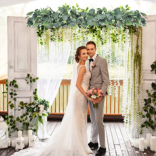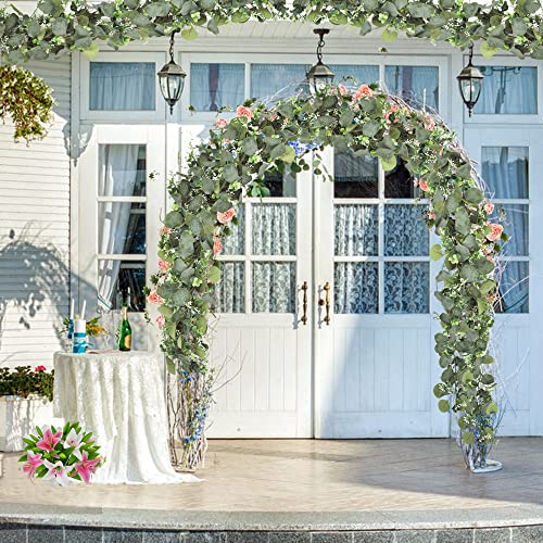 【Decorazione Perfetta】 La ghirlanda di eucalipto artificiale è un'ottima decorazione per arco nuziale, giardino, veranda, balcone, altalena, decorazione murale e cestino per biciclette. I viticci di eucalipto sono adatti anche per ghirlande fai-da-te.
