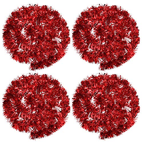4 Pezzi Ghirlanda di Natale Tinsel Ghirlanda di Tinsel Metallizzata Ornamenti Lucidi dell'Albero di Natale per Decorazioni della Festa di Compleanno di Nozze di Natale (Rosso)