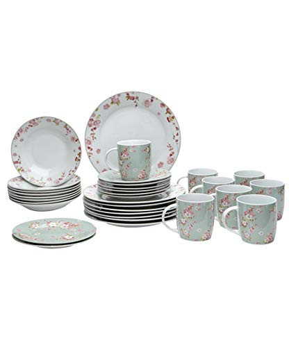 8 piatti piani da 26.5 cm, 8 piattini da 19 cm, 8 x ciotole 18 cm 8 x 283,5 gram tazze.