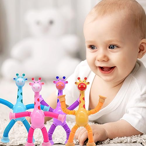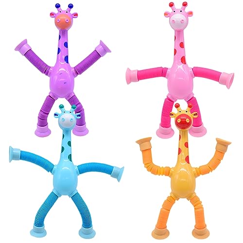 4 Pezzi Giocattoli di Aspirazione Giraffa,Giocattolo Giraffa con Ventosa Telescopica, Giraffa Pop Tubo Giocattolo Educativo per Bambini