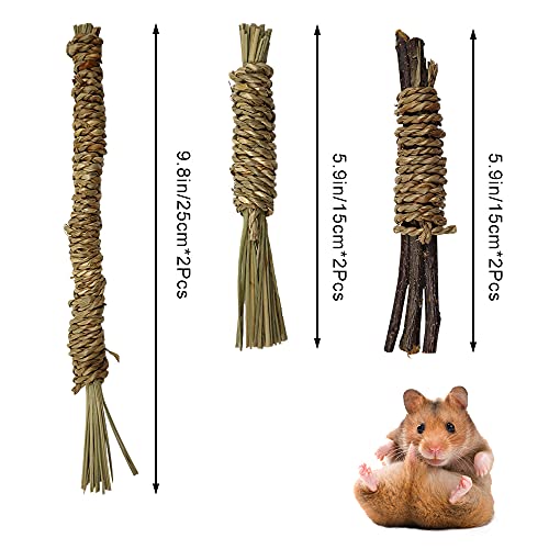 6 Pezzi Giocattoli da Masticare per Criceti, Include Bastoncini di Legno di Mela e Erba di Alghe Marine, Giocattolo Molare per Animali Domestici Naturali, Usato per Coniglio, Cincillà, Criceto