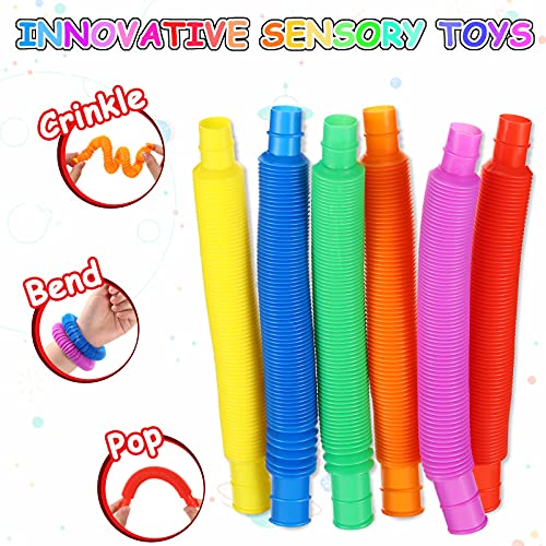 6 Pezzi Mini Giocattoli Sensoriali di Tubi Pop, Tubo Elastico Multicolore Giocattoli Sensoriali Allevia i Giocattoli di Stress