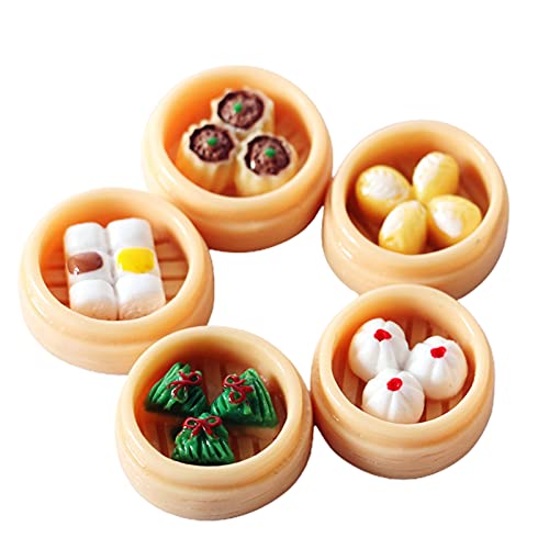 5 pezzi giocattolo per casa delle bambole al vapore panini modello | fai da te in resina cibo miniatura fingere Playset casa delle bambole gnocchi per 1/12 DollHouse casuale 5 pz