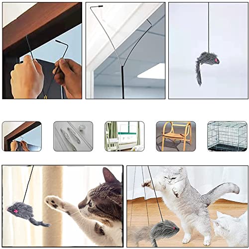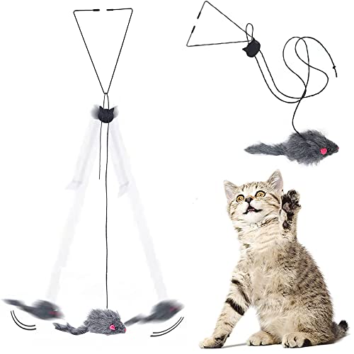 ZJYY 2 Pezzi Giocattolo Gatti Appendere, Gioco Gatto Topo, Giochi Piume Gatto, Giocattolo Gatti Fune, per Gatti Filo rimbalzante con Cinturino Regolabile da 180 cm
