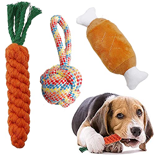 3 Pezzi Giochi da Masticare Cane, Giocattolo da Masticare Resistenti, Corda da Masticare per La Pulizia dei Denti, Peluche Cane Corda Interattivi, per Cani di Piccola Taglia/Cuccioli (Colore Casuale)