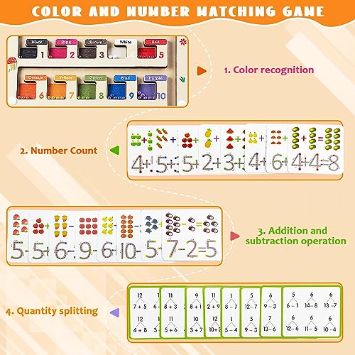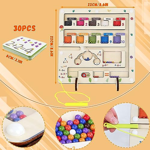 Giocattoli Magnetico Labirinto Multifunzionale - Un interessante gioco di smistamento per aiutare i bambini a imparare il riconoscimento del colore e l'addizione e la sottrazione di numeri! Il nostro robusto labirinto in legno presenta 10 "barattoli di vernice" incorporati, 55 palline magnetiche e 59 carte da gioco numeriche, oltre a un'area sottostante per l'addizione e la sottrazione per esercitarsi con i numeri.