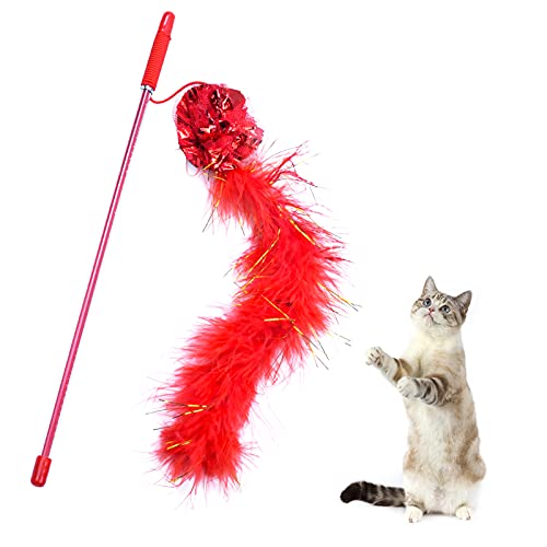 2 Pezzi Giochi con Piume per Gatti, Giocattoli Interattivo per Gatti, Viola e Rosso Bastone Divertente per Gatti Ideale per Esercitare Il Tuo Gattino, Giochi per Gatti per Migliorare la Reattività