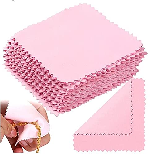 100 Pezzi Gioielli Panno di Pulizia Pezza per Pulire per Sterlina Argento Oro Platino Mantenere Pulito e Lucido (Rosa, 8 * 8 cm)