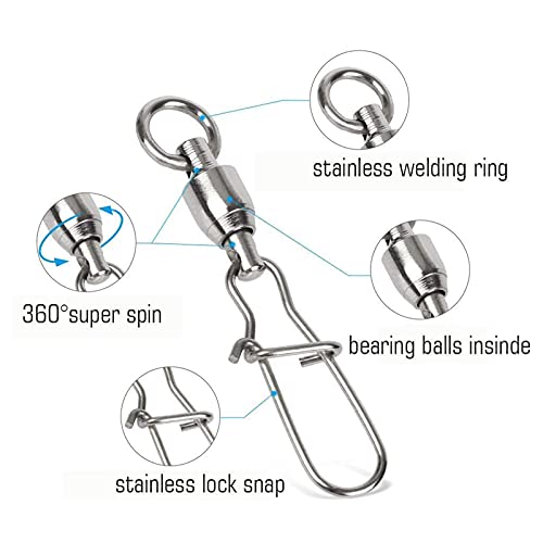 30 pezzi Girelle da pesca con cuscinetti a sfera in acciaio inossidabile Girelle da pesca con Snap per acqua salata acqua dolce pesca daltura traina e jigging ad alta velocità pesci predatori carpe