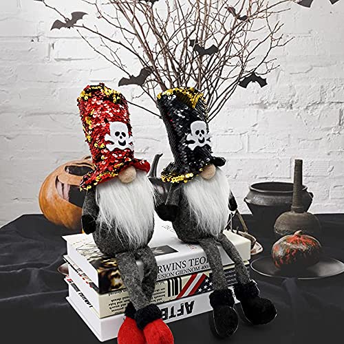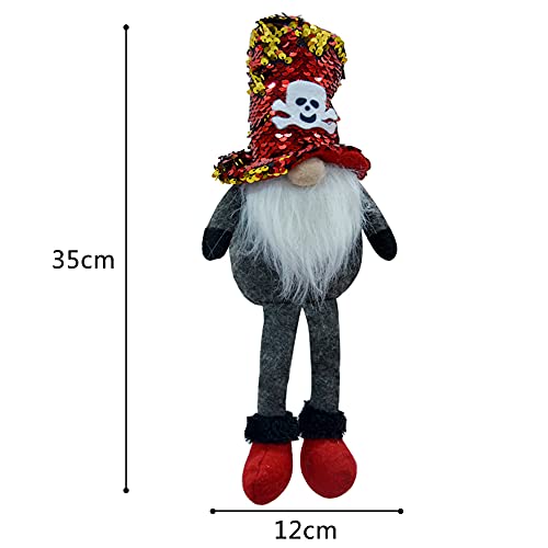 SHOKUTO Halloween gnomo in peluche con cappelli a teschio di paillettes reversibili e colori vivaci, così unico e carino, perfetto per la decorazione di Halloween.