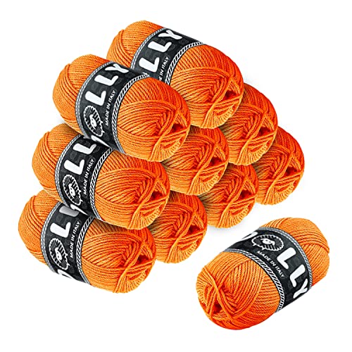 10 Pezzi Gomitoli Lana, 15 Colori Gomitoli di Lana Filato per Ferri 50g per Maglieria Fai da Te (Arancione)