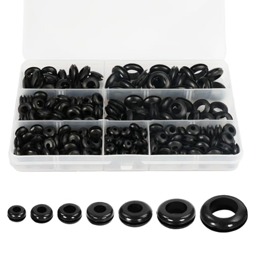 WHC 260 Pezzi Gommini Passacavo Gomma Kit, 7 Dimensioni Passacavi In Gomma, Nero Tappi In Gomma, Gommini Passacavo Elettrico per Il Cavo Condotto, Connettori di Protezione Del Cavo E Cavi